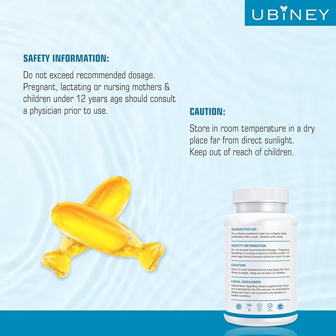 - High Potency Omega-3 Formula: Each serving of Ubiney Fish Oil Softgels delivers 2000mg of Omega-3 fatty acids, including 360mg EPA and 240mg DHA, to support heart, brain, and joint health.