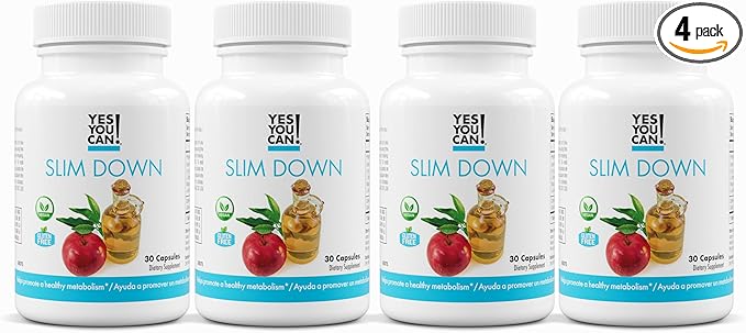 Yes You Can! Slim Down Dietary Supplements - with African Mango, L-Carnitine, Apple Cider Vinegar, Green Tea Extract, and Caffeine derived from Guarana Seed Extract, 120 Capsules/4 Month Supply