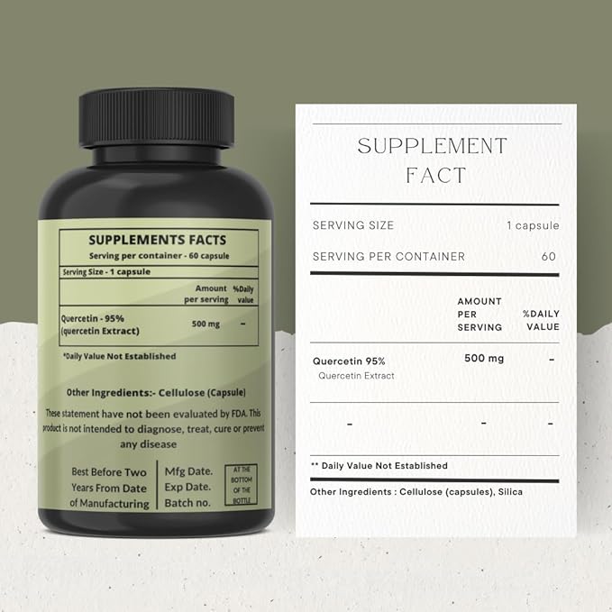 500mg Quercetin with Bromelain Capsules: Respiratory Support Non-GMO | Gluten Free | Supports Overall Health & Well Being (20 Capsules)