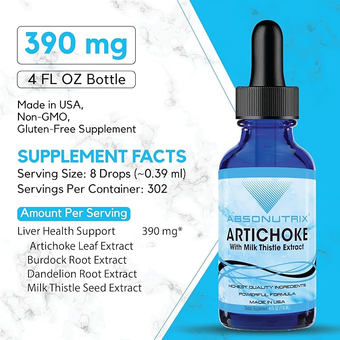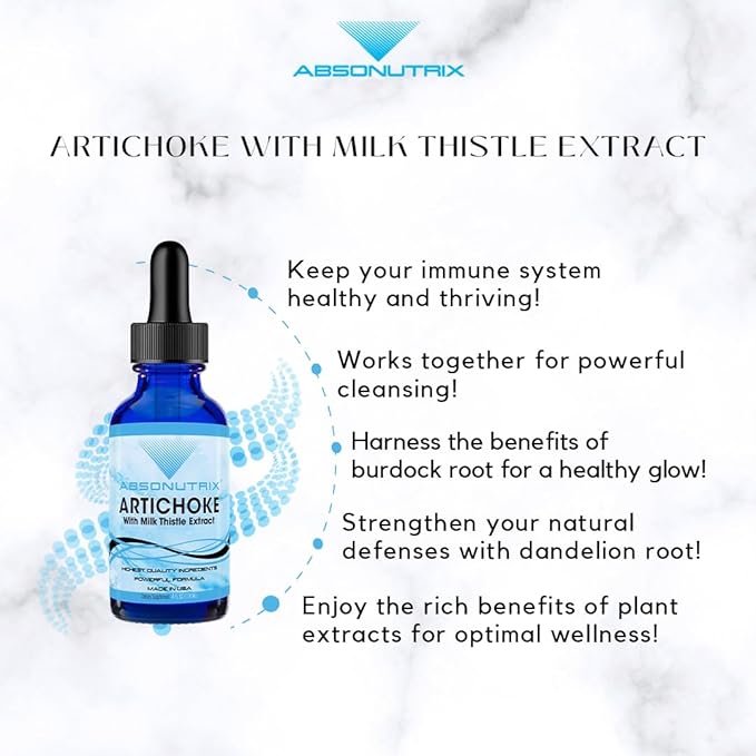 - Absonutrix’s Artichoke with Milk Thistle Extract is a 4 FL OZ liquid health supplement with a unique blend designed to support overall wellness in a convenient liquid form, perfect for your daily health routine.