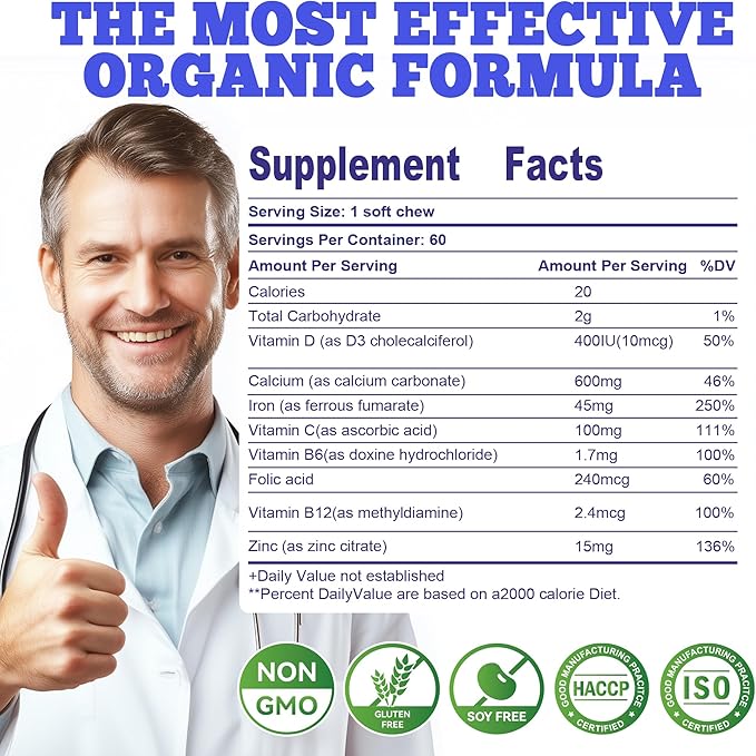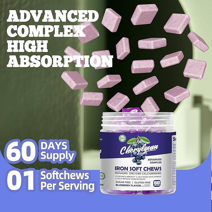 - Formulated for Those Who Need Iron:Cherylgum’s Iron supplement chews are a healthy delight for the entire family! Designed for those with common iron deficiencies such as pregnant women, children, menstruating girls, vegans, vegetarians, and anemic men or women— help fight fatigue, sharpen mental clarity, and maintain healthy energy levels, making them an ideal choice for enhancing overall vitality.