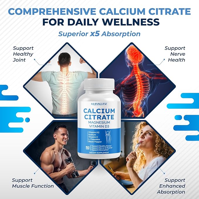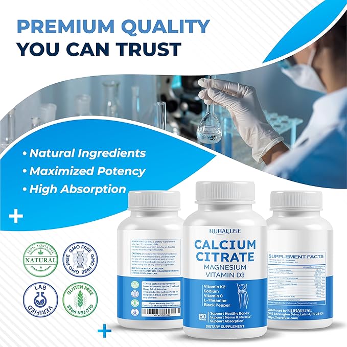 - 75 Days' Worth: Providing 150 capsules in each bottle, NuraFuse Calcium Citrate Supplement ensures a convenient 75-day supply, requiring just two daily capsules for easy incorporation into your daily routine