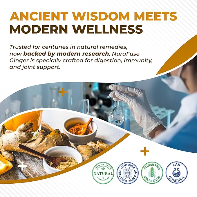 - Liposomal Technology for Better Absorption: Nurafuse Ginger Supplement uses liposomal technology to encapsulate ingredients in tiny fat bubbles, protecting them from breakdown in the digestive tract and enhancing absorption in the body
