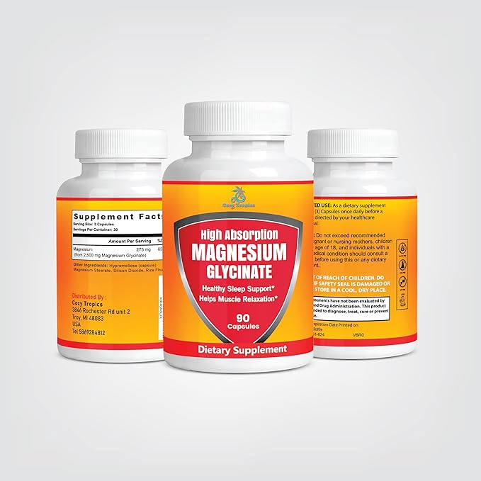 - High Absorption Formula: Magnesium glycinate is designed for optimal absorption, providing superior muscle function, nerve health, and consistent energy support. This formulation ensures your body fully utilizes magnesium, allowing for enhanced activity, balanced nerves, and sustained vitality throughout the day.