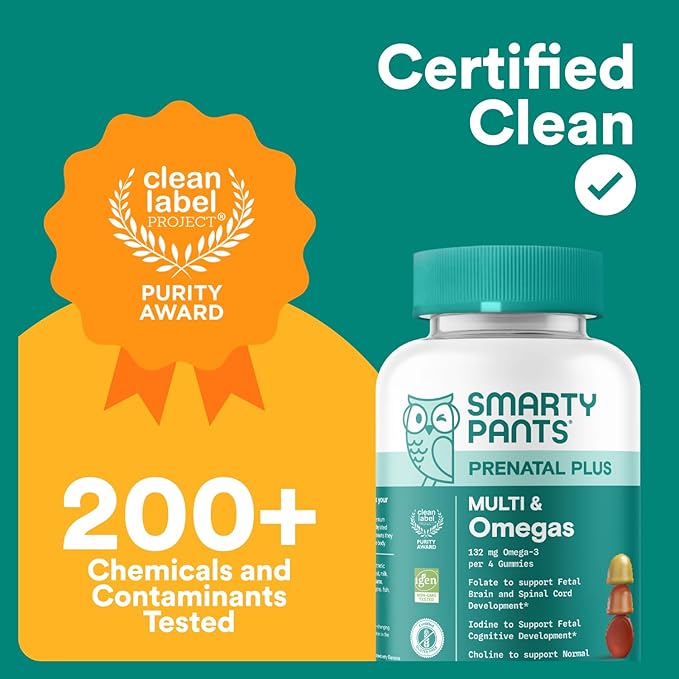 - CERTIFIED CLEAN, THIRD PARTY TESTED FORMULA: Our prenatal vitamins are a Clean Label Project Purity Award Winner! Subjected to strict testing for 200+ contaminants and chemicals, so you can be sure you're giving your family high quality vitamins you can trust