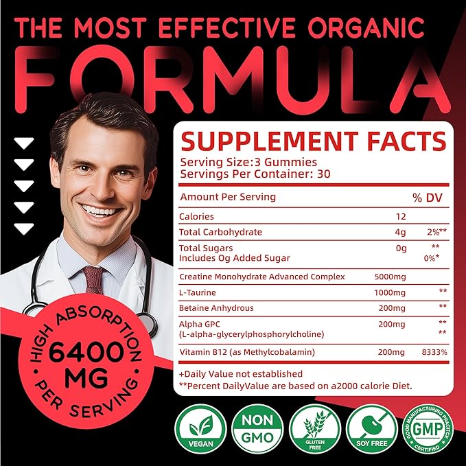 - [Premium Formula,Maximum Efficacy]: Our Creatine monohydrate gummies contains 5g=3 gummies pure creatine monohydrate per serving combined for Maximum Benefits.