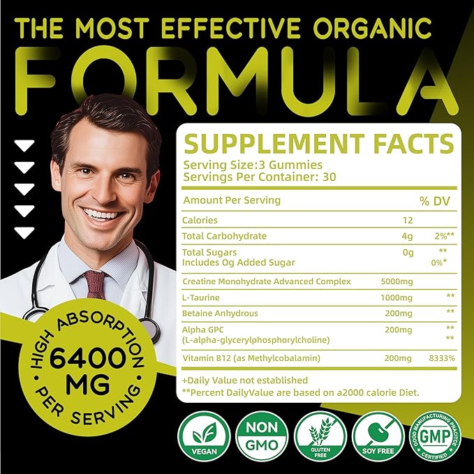 - [Premium Formula,Maximum Efficacy]: Our Creatine monohydrate gummies contains 5g=3 gummies pure creatine monohydrate per serving combined for Maximum Benefits.