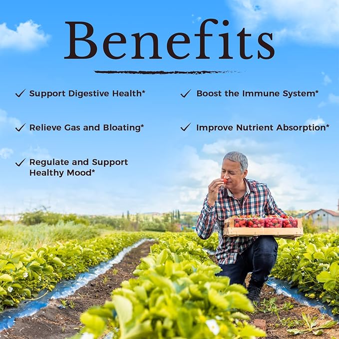 - Product Benefits : Boost the Immune System*, Relieve Gas and Bloating*, Support Digestive Health*, Improve Nutrient Absorption*, Regulate & Support Mood Levels* Boost the Immune System*, Relieve Gas and Bloating*, Support Digestive Health*, Improve Nutrient Absorption*, Regulate & Support Mood Levels*