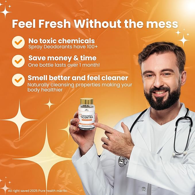 - ✨ Clean Ingredients – Made with natural, effective components that work gently on your body while delivering powerful results. With Scentra, you can feel good knowing you're using a deodorizing supplement that’s as clean and natural as it is effective.