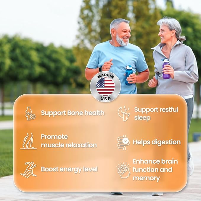- Muscle, Bone & Nerve Function – Magnesium contributes to normal muscle function, bone strength, and nerve signaling, helping to maintain overall musculoskeletal health.