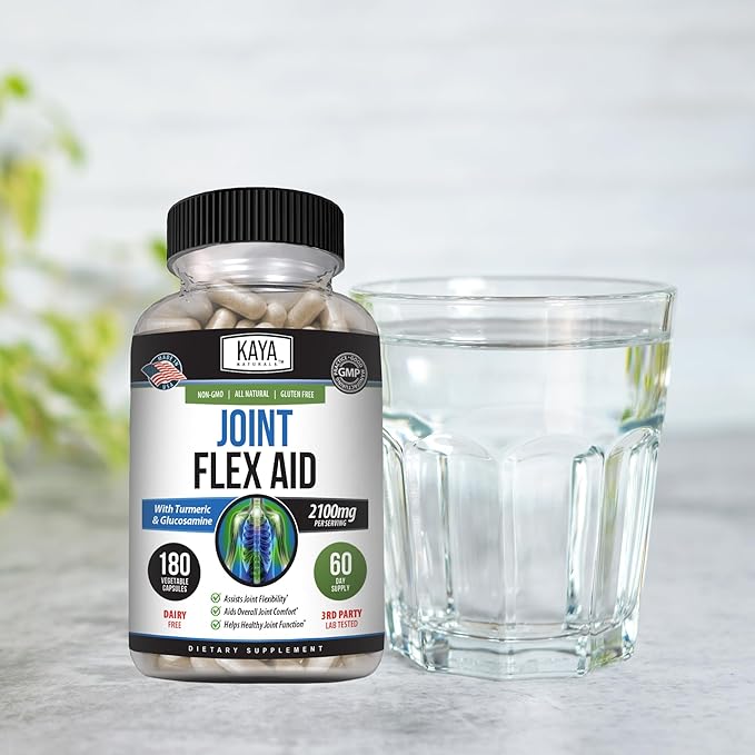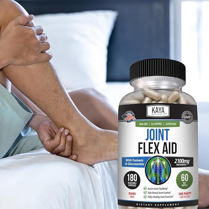 Kaya Naturals Flex Aid - Mobility Support Supplement for Men and Women - Turmeric Capsules with Glucosamine Sulfate, Boswellia Serrata and MSM - for Knee Support and Mobility Health - 180 Count