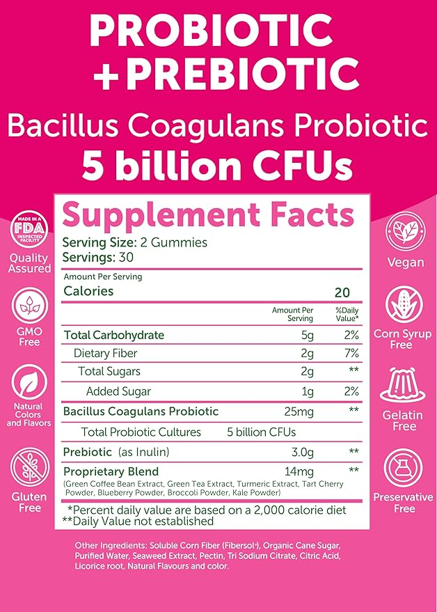 - Trusted by Health-Conscious Consumers: A great choice for those seeking probiotics and prebiotics gummies, designed for optimal gut health with every bite.
