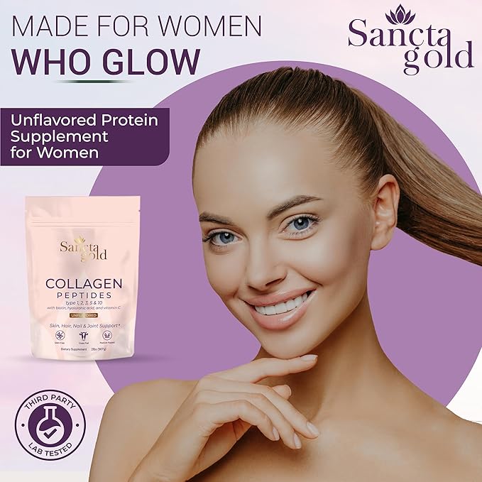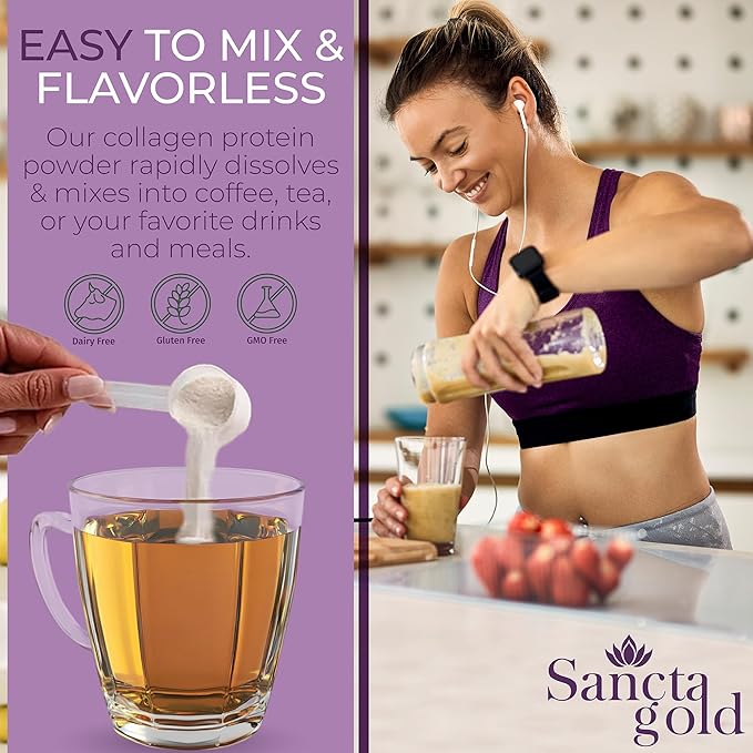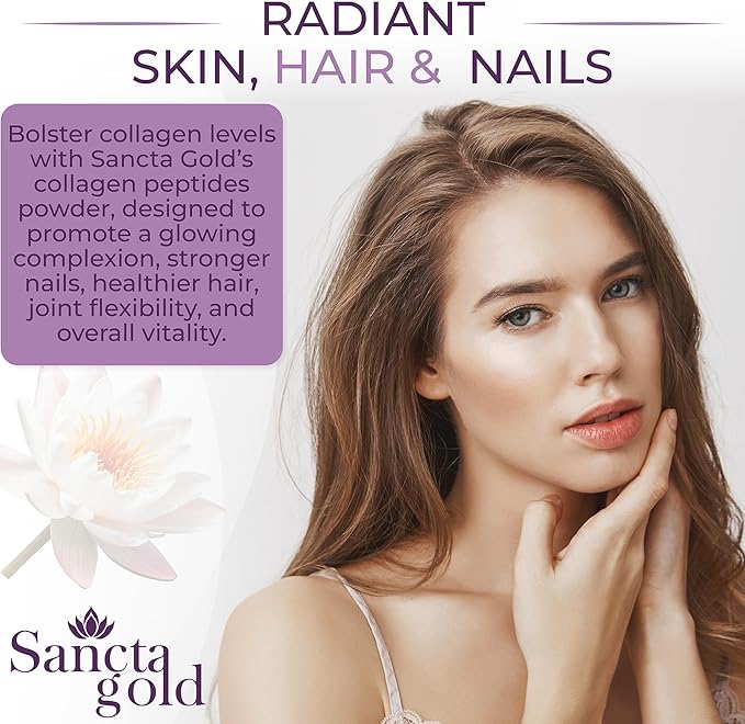 - Radiant Skin, Hair & Nails: Bolster collagen levels with Sancta Gold’s collagen peptides powder, designed to promote a glowing complexion, stronger nails, healthier hair, joint flexibility, and overall vitality