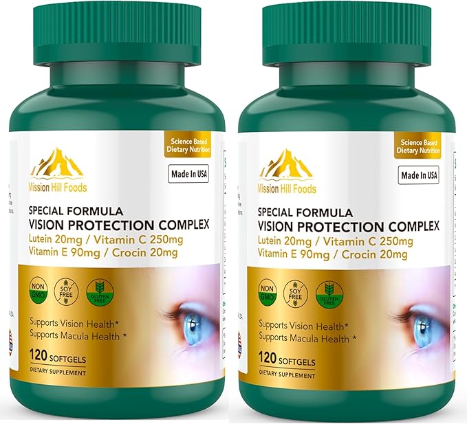 Lutein and Zeaxanthin Supplements - 6 in 1 Vision Protection Complex with Lutein, Zeaxanthin, Astaxanthin, Crocin, Vitamin C & E, 120 Softgels, Non-GMO, Gluten-Free, Supports Eye Health