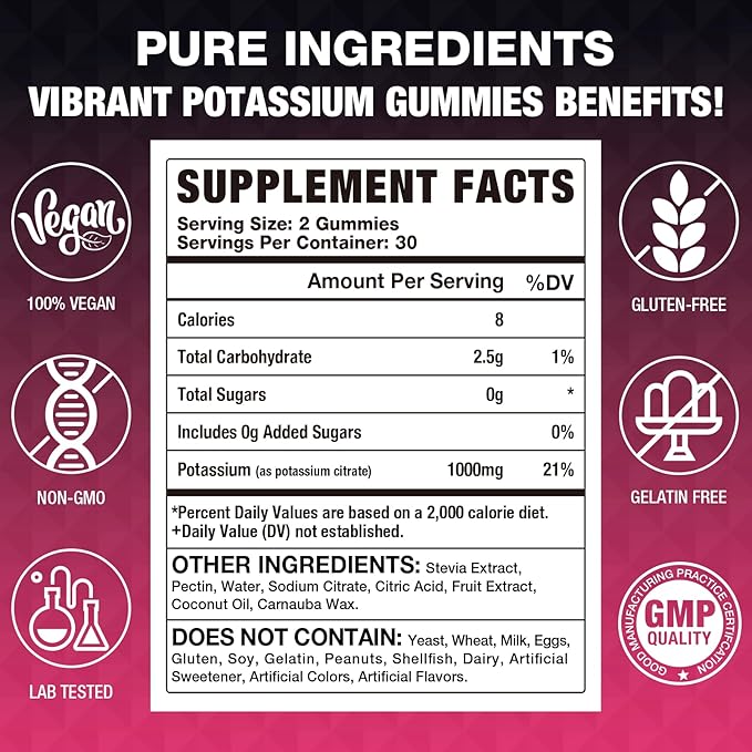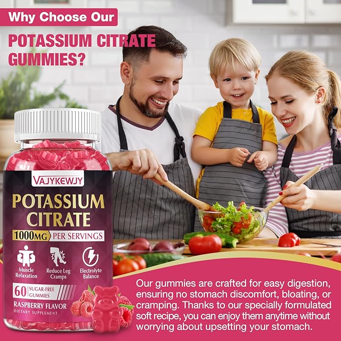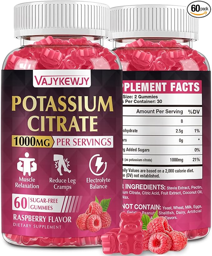 - Essential Potassium Support: Our potassium citrate gummies provide 1000mg of potassium per serving, essential for maintaining healthy muscle function, reducing leg cramps, and supporting overall growth and development in both adults and children.