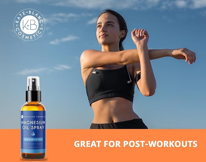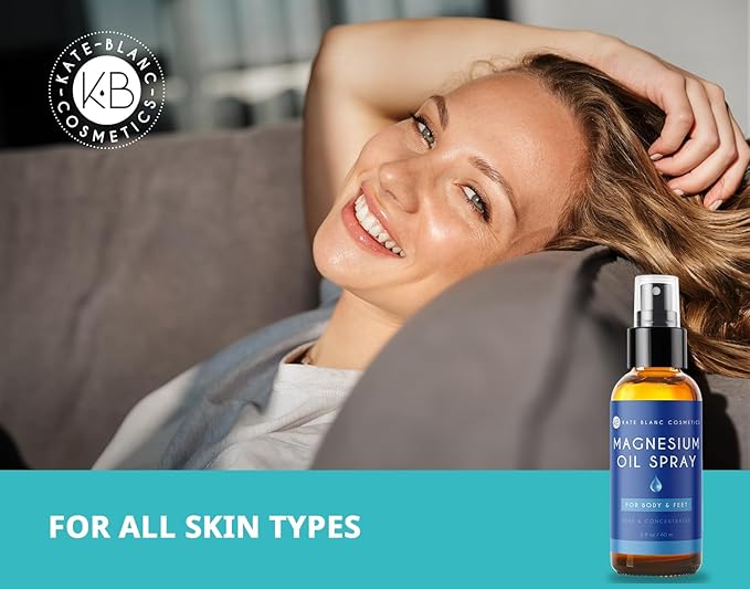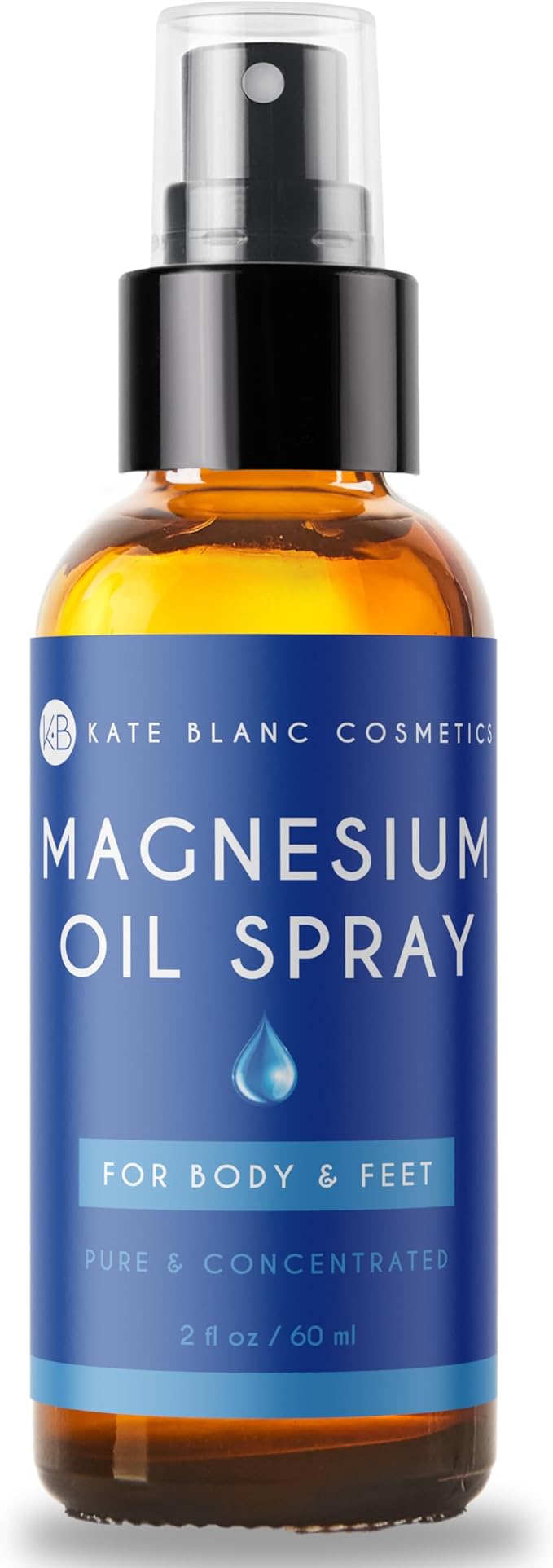 Kate Blanc Cosmetics Pure Magnesium Oil Spray for Body & Feet. Topical Magnesium Foot Spray, Concentrated Liquid (2oz, Natural)