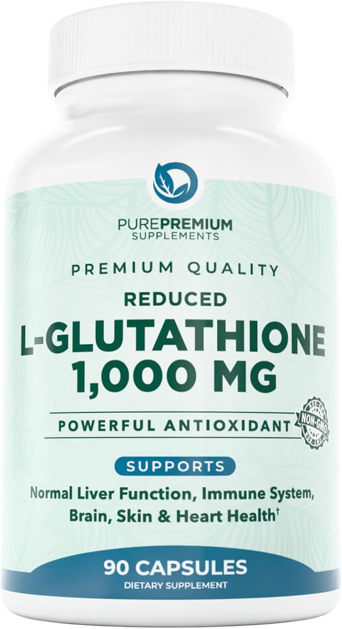 PurePremium Reduced Glutathione 1000mg Per Serving - 500mg Per Capsule – L-Glutathione Supplement & Antioxidant Support for Normal Liver, Brain, Skin & Heart Health – 90 Capsules