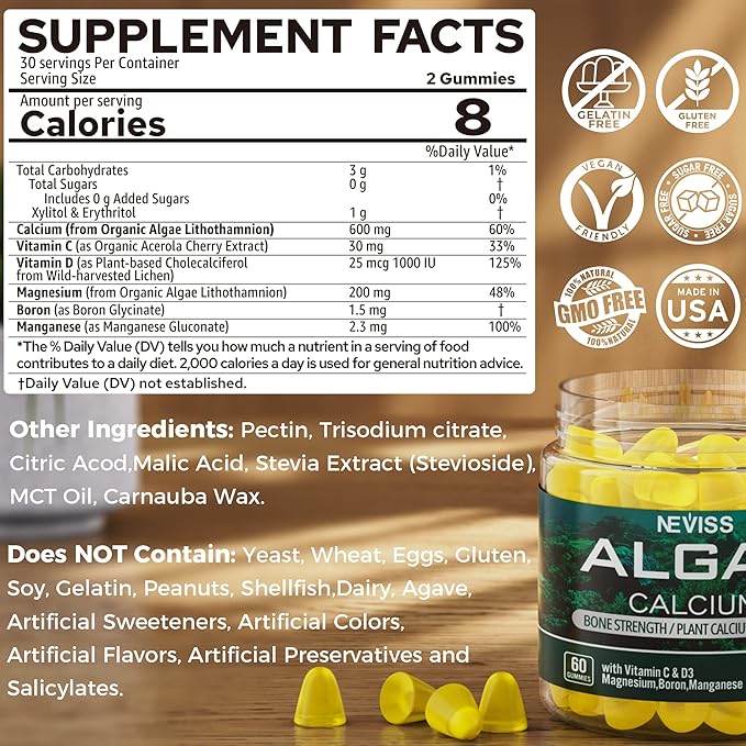 NEVISS Algae Calcium Gummies with Zinc and Magnesium Supplement