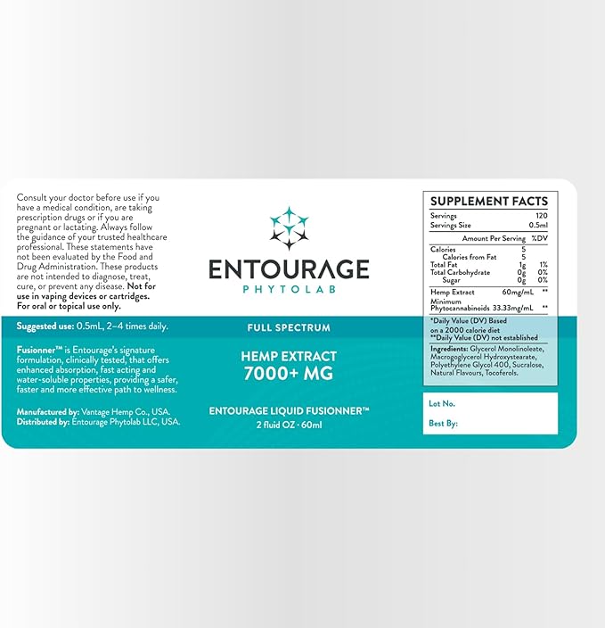 Entourage Hemp Extract – 7000 mg | Ultra-Potent, Water Soluble, CO2 Extracted, Nanotechnology | Promotes Wellness and Balance