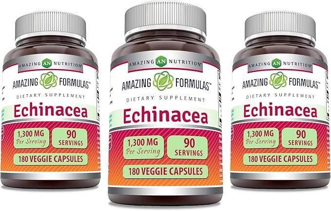 Amazing Formulas Echinacea | 1300 Mg | Veggie Capsules Supplement | Non-GMO | Gluten Free | Made in USA (3 Pack | 180 Count)