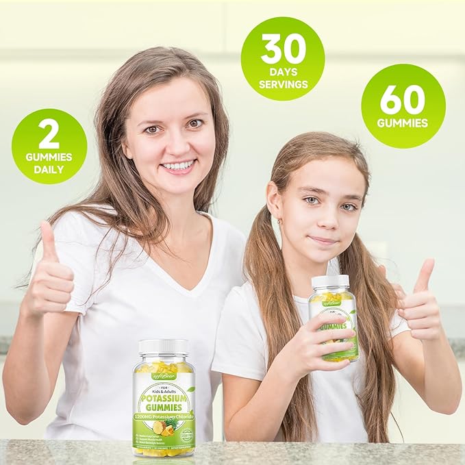 - 1200 mg Potassium Supplement: Our potassium gummies contain potassium chloride 1200mg per serving. High dose potassium chloride gummy into your daily routine, you can ensure that your body receives the necessary potassium levels for optimal health