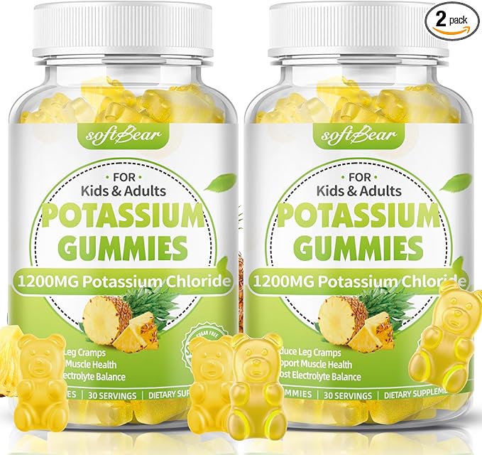 - Sugar Free Potassium Supplement Gummies: These ingredients of potassium chloride supplement gummies are vegan, non-GMO, gluten-free, and won't increase physical burden. softbear potassium gummies are easy to chew and swallow, perfect for adults & kids, women & men