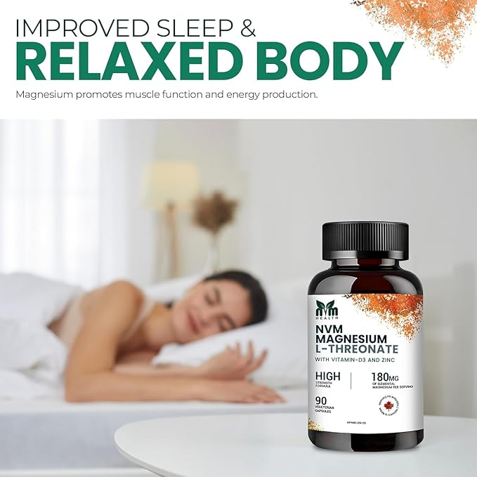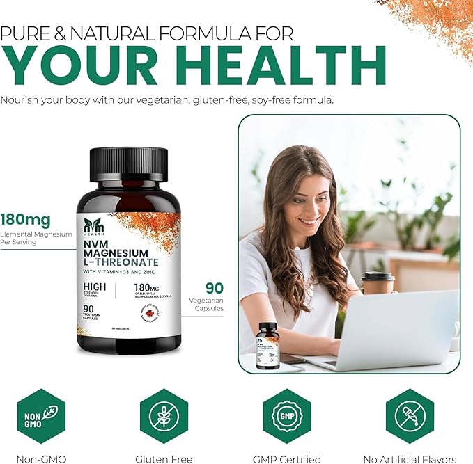 - 𝟑 𝐈𝐍 𝟏 𝐅𝐎𝐑𝐌𝐔𝐋𝐀: NVM Health’s unique combination of Magnesium L-threonate helps restore brain function, Vitamin D helps lower cortisol levels for Calm, relaxed and focused mental state Zinc potentially lowers the age related cognitive decline.