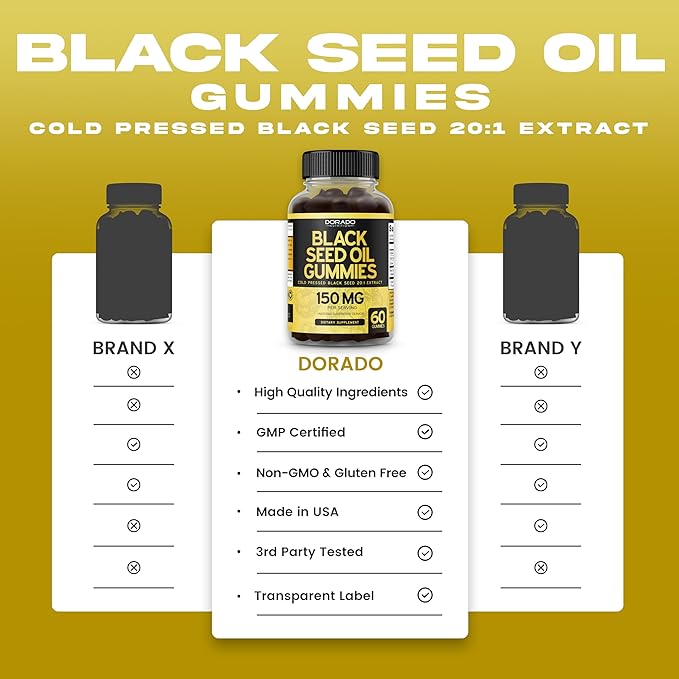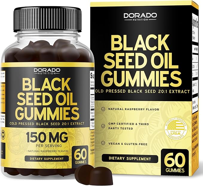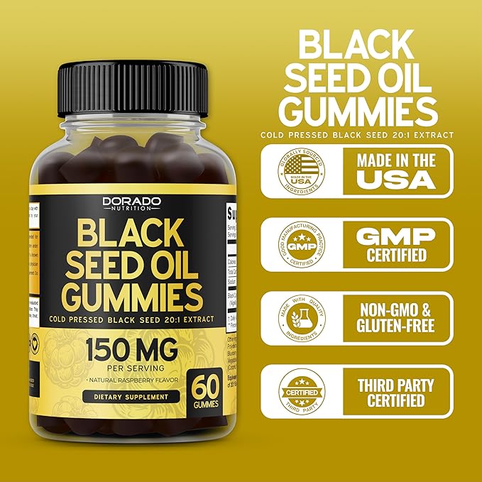 - PREMIUM BLACKSEED OIL GUMMIES – Elevate your supplement routine with our expertly formulated black seed gummies, made with cold-pressed black seed oil for skin health, immune support, and antioxidant protection. A clean, convenient choice for those who prefer high-quality black seed oil gummies without the bitter taste.