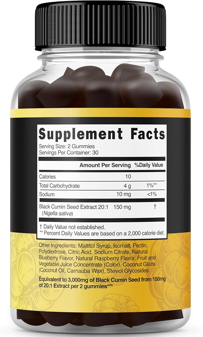 - BLACK SEED OIL GUMMIES FOR ADULTS – Unlock the power of nature with our premium black seed oil gummies, crafted for adults seeking daily wellness support. Each gummy delivers a potent dose of black seed oil for skin, immunity, and overall vitality in a delicious, easy-to-take form.