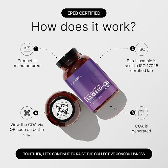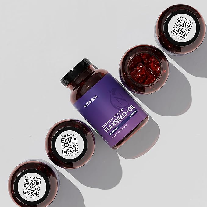 Nutriissa Flaxseed Gummies – Digestive Health & Omega Support – EPEB Certified for Purity & Potency – 60 Blueberry Flavored Vegan Gummies