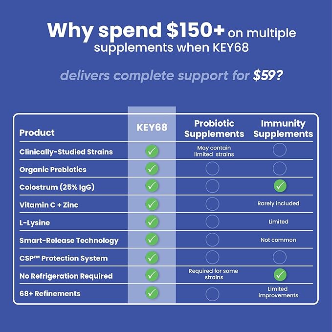 - ✅ Advanced Probiotic for Digestive Health – Packed with 20 Billion CFU and 5 clinically backed strains, KEY68 probiotic supplement supports digestive balance, gut flora health, and relieves bloating, gas, and constipation naturally.