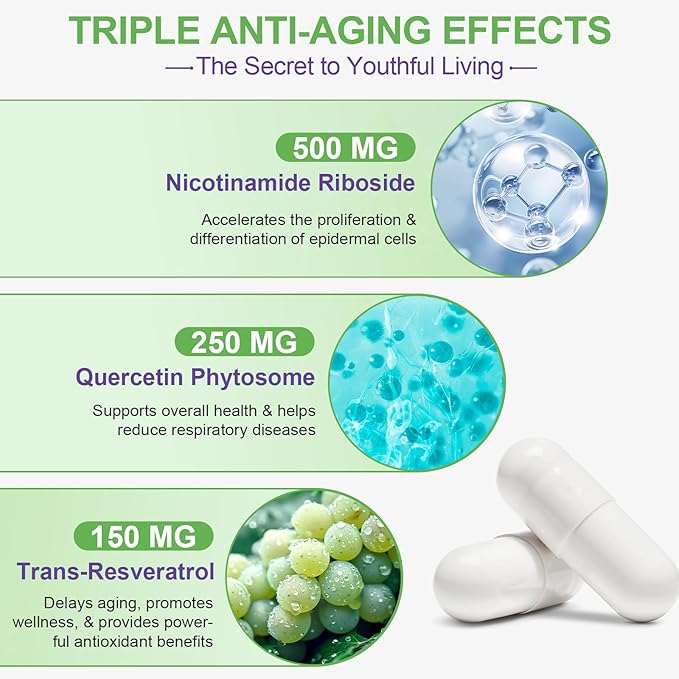 NAD Supplement, 900MG Liposomal Nicotinamide Riboside, Liposomal Resveratrol, Quercetin, High Purity NAD+ Supplement for Energy, Support Cellular Health, Stamina & Healthy Aging, 80 Capsules