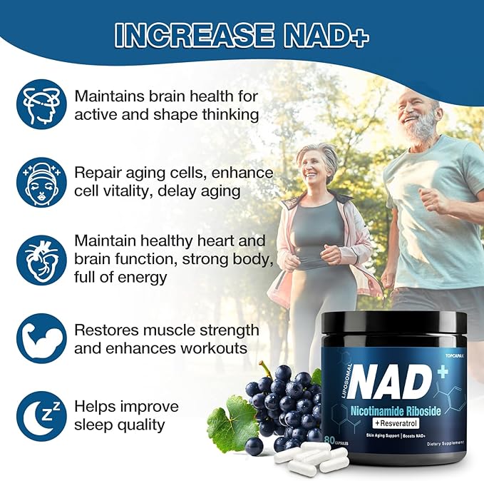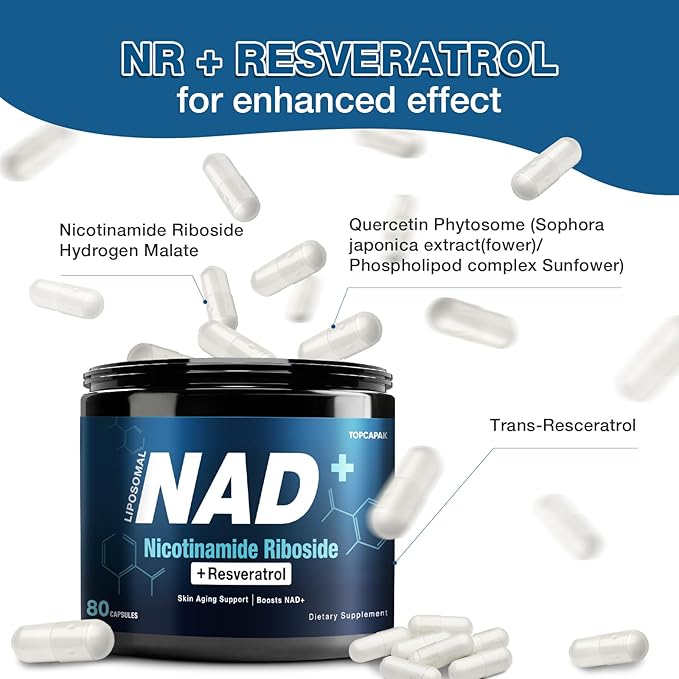 NAD+ Supplement 1000mg - Nicotinamide Riboside (NR) and Resveratrol, Liposomal NAD of Pure Organic Ingredients for Women & Men Healthy Aging, Brain and Cellular Energy, 80 Capsules(2Pcs)