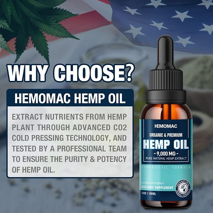 - ORGANIC HEMP OIL: HEMOMAC select the prime organic hemp in Colorado, Hemp plant extract by advanced carbon dioxide extraction which better retains all active ingredients and nutrients.