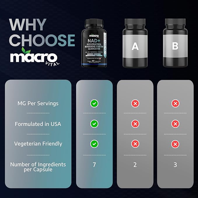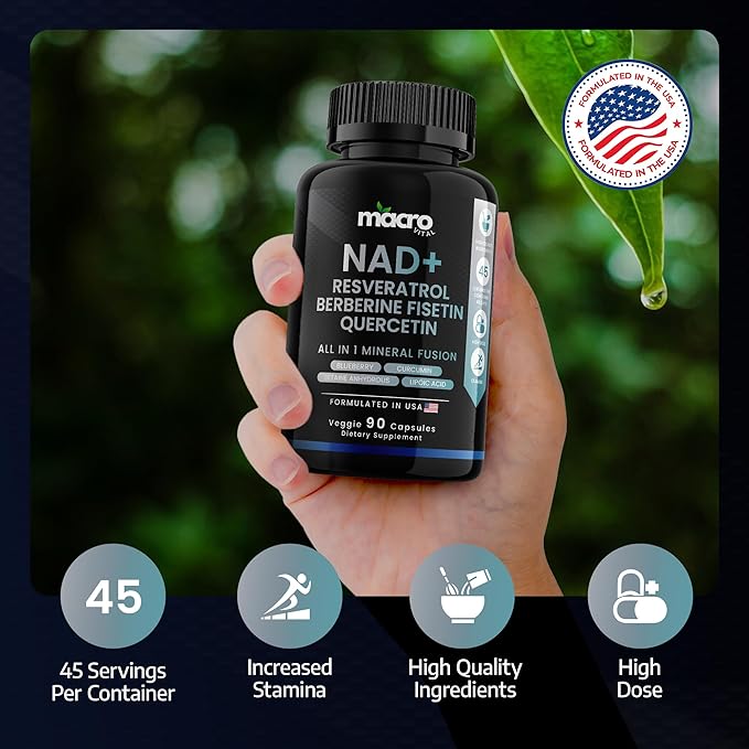 - 💊 18 ACTIVE INGREDIENTS IN ONE FORMULA Our expertly formulated capsules include a fusion of cellular energizers and natural antioxidants such as Nicotinamide (Vitamin B3), Berberine, Trans-Resveratrol, Quercetin, Betaine, Grape Seed Extract, Vitamins K2 & D3, Green Tea, Curcumin, Fisetin, Alpha Lipoic Acid, Noni, Acai, Blueberry, Pomegranate, Hawthorn Berry, and Black Pepper Extract.