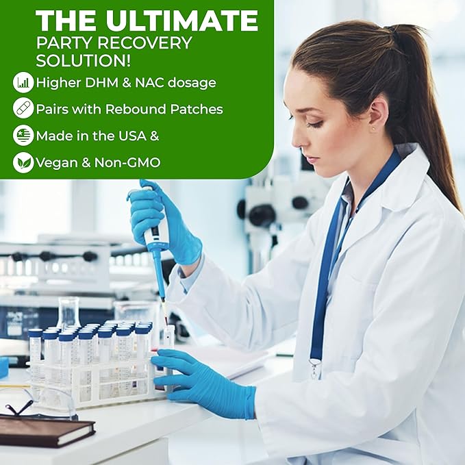 - Advanced Formula with DHM and N-Acetyl Cysteine – Rebound Party Support Capsules contain a carefully selected blend of 1,500 mg of DHM, combined with N-Acetyl Cysteine and Milk Thistle. Crafted for quality and consistency, this blend is a convenient addition to your night out routine.