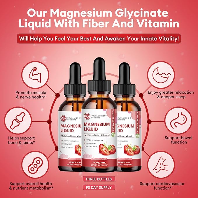 - Multiple Benefits: Magnesium glycinate liquid can promote optimal magnesium levels, important for improving zzZZ quality. Cellulose fiber, bromelain promote healthy digestion. Vitamin D is included in this formula to help support optimal bone health. Vitamins B6, C, Zinc may support immune system.