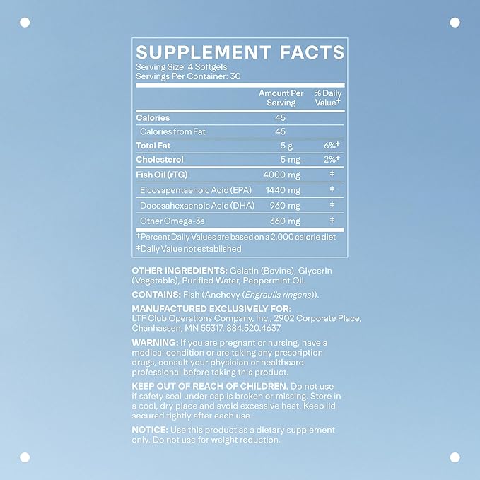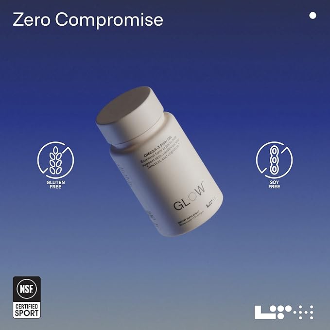 LTH Glow Omega-3 Fish Oil - NSF Certified for Sport - Omega-3 Supplement - Supports Brain & Heart Health - Aids Healthy Skin, Hair & Nails - Gluten Free & Soy Free - 120 Softgels