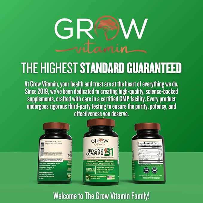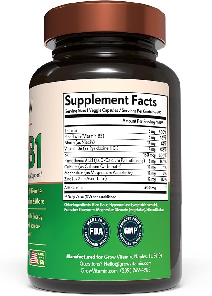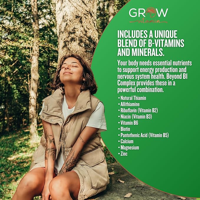 grow vitamin Beyond B1 Complex - Allithiamine Natural Vitamin B1 Supplement with Essential B-Vitamins, Thiamin, Niacin, Biotin, Magnesium & More - Supports Energy, Mood & Nervous System - 90 Capsules