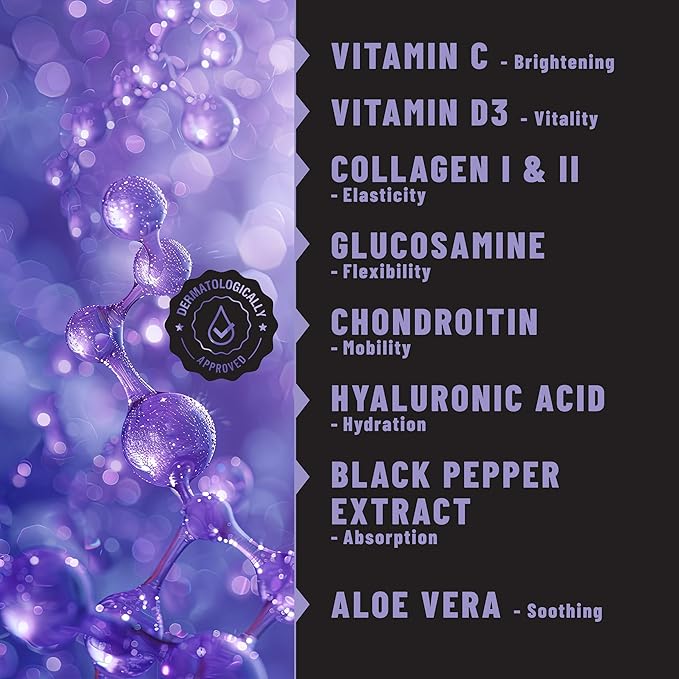 - Enriched with Collagen Types 1 & 2: Supports skin elasticity, hydration, and firmness to help maintain a youthful, smooth appearance.