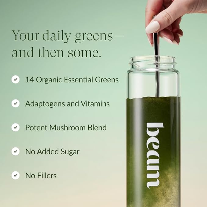 - FUNCTIONAL INGREDIENTS: Beam Greens Superfood Powder provides a blend of 14 Organic Essential Greens, in addition to other key ingredients such as Vitamins, B6, B12, Magnesium, Ashwagandha and Zinc.