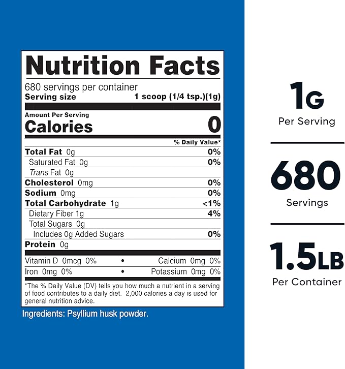 - Contains 1.5 pounds of psyllium husk powder per container.