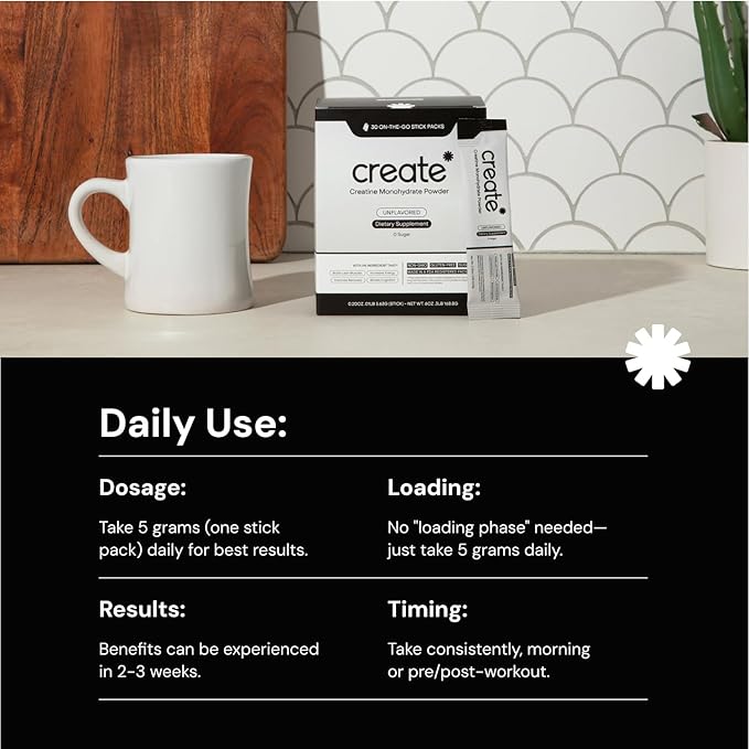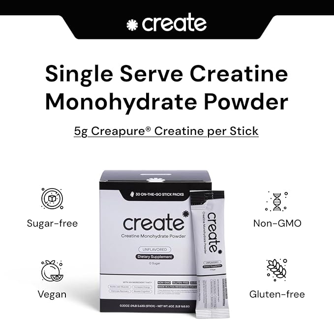 - Experience next-level strength and endurance. With 5g of the world’s purest creatine in every stick, Create powers your workouts and daily performance like never before.