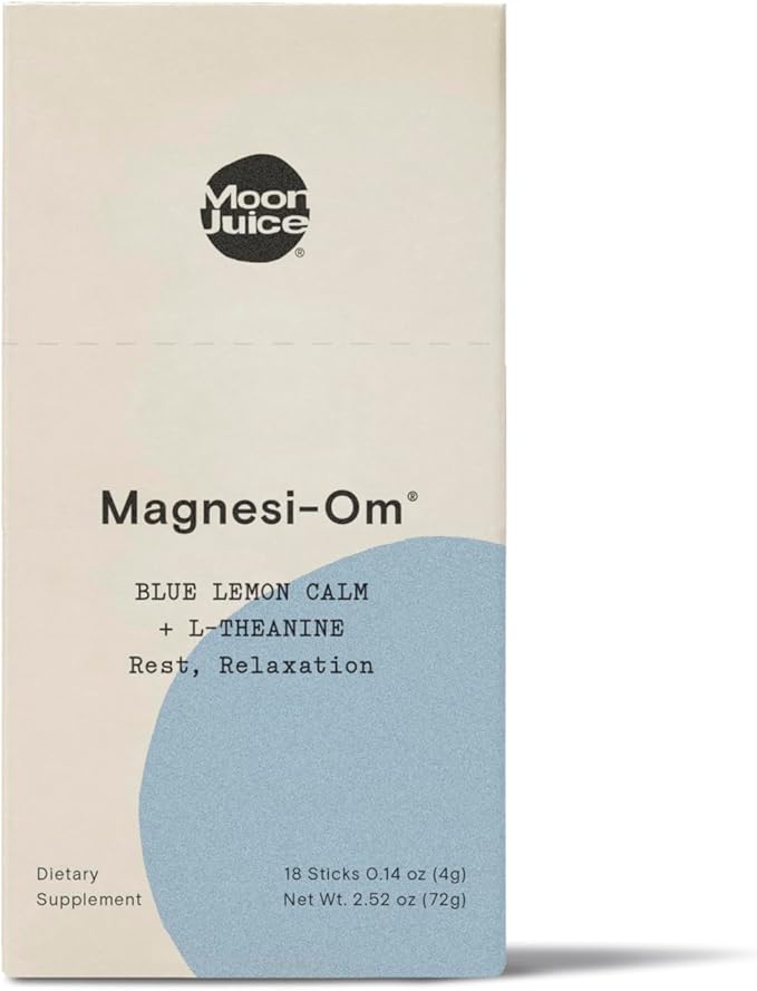 Moon Juice - Magnesi-Om, Blue Lemon - Sticks (18 Servings) - Support Brain Health, Rest - Magnesium Powder - L-Theanine - Regularity - Compostable - 100% Traceable - Vegan, Non GMO - 0.14oz