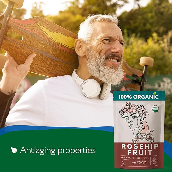 - 🌿 USDA Organic Dried Rosehip Fruit (Rosa Canina): Sourced from carefully harvested organic rosehips, known for their rich nutrient content and natural health benefits.