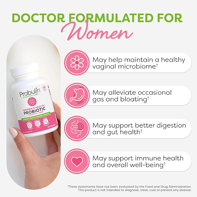 Probulin Women’s Probiotics, Daily Vaginal, Gut and Immune Health Supplement Capsules, 20 Billion CFU, 12 Probiotic Strains, Vegan, 60 Count Bottle