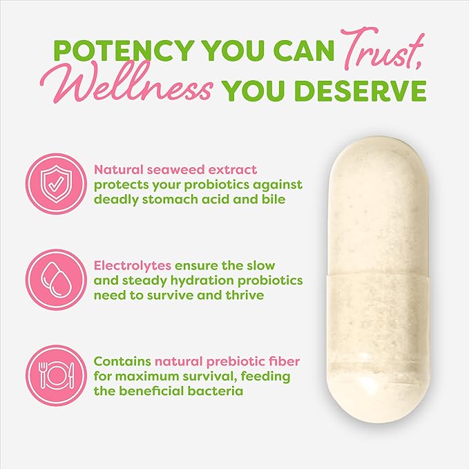 - HEALTH BENEFITS: Our probiotic nutritional supplements may help maintain a healthy vaginal microbiome, may support better digestion and gut health, may alleviate occasional gas and bloating, and may support immune health and overall well-being; seaweed extract provides a secondary barrier against stomach acid and bile, and the prebiotic fiber and electrolytes keep probiotics nourished and hydrated for maximum survival