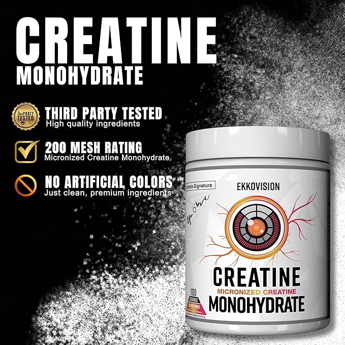 - PURE MICRONIZED CREATINE MONOHYDRATE FOR EASY MIXING: Experience Ekkovision Creatine Monohydrate with a fine, micronized texture that dissolves smoothly in water, juice, or shakes. Enjoy a versatile, unflavored formula that seamlessly fits into your daily routine, whether for workouts or overall energy and fitness support. Each container delivers 100 servings, making it a practical choice for those committed to their fitness goals.