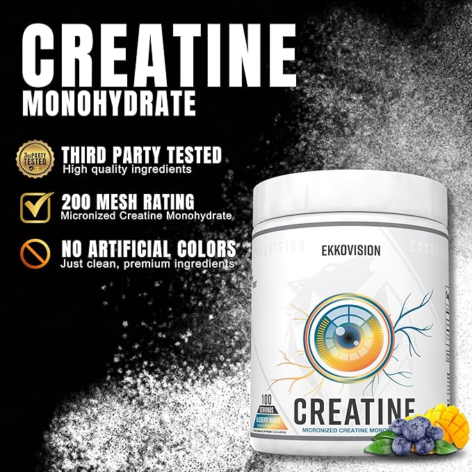 - SUPPORTS PERFORMANCE, ENERGY, ENDURANCE, AND COGNITION: Ekkovision Creatine Monohydrate can help support physical performance during high-intensity workouts, replenish energy for sustained effort, and promotes endurance for longer sessions. By increasing phosphocreatine in your body, it can help power, strength and speed. Emerging research suggests it may also support cognitive focus, making it a versatile addition to your active lifestyle.