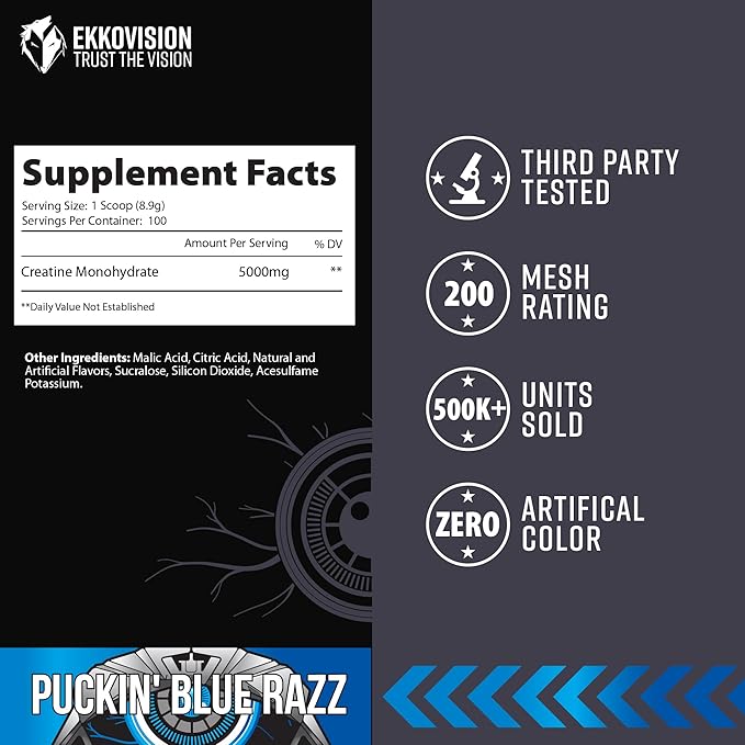- SUPPORTS PERFORMANCE, ENERGY, ENDURANCE, AND COGNITION: Ekkovision Creatine Monohydrate can help support physical performance during high-intensity workouts, replenish energy for sustained effort, and promotes endurance for longer sessions. By increasing phosphocreatine in your body, it can help power, strength and speed. Emerging research suggests it may also support cognitive focus, making it a versatile addition to your active lifestyle.